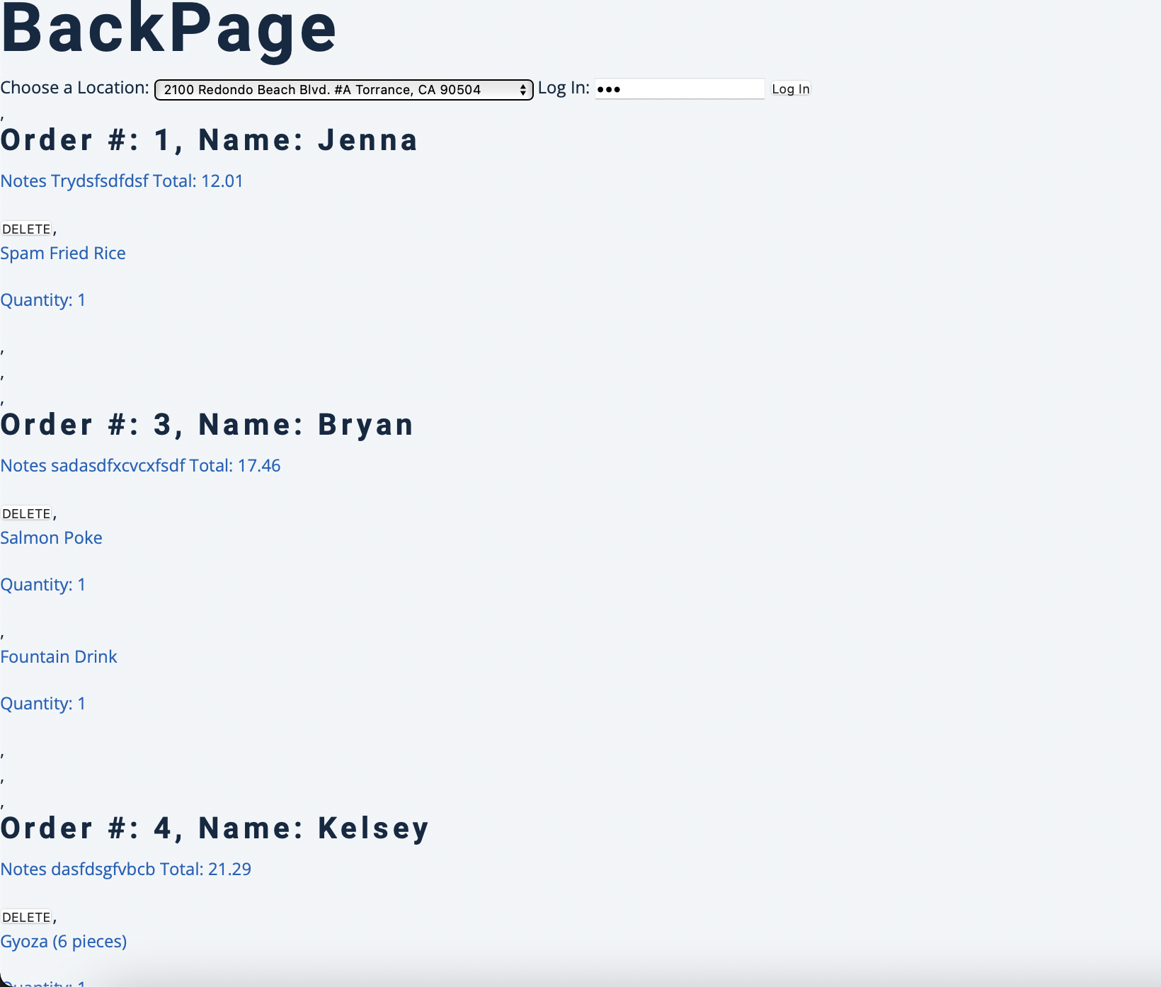 An additional feature is the backpage of the website. This is a hidden employee site that involves the employee handling portion of orders
